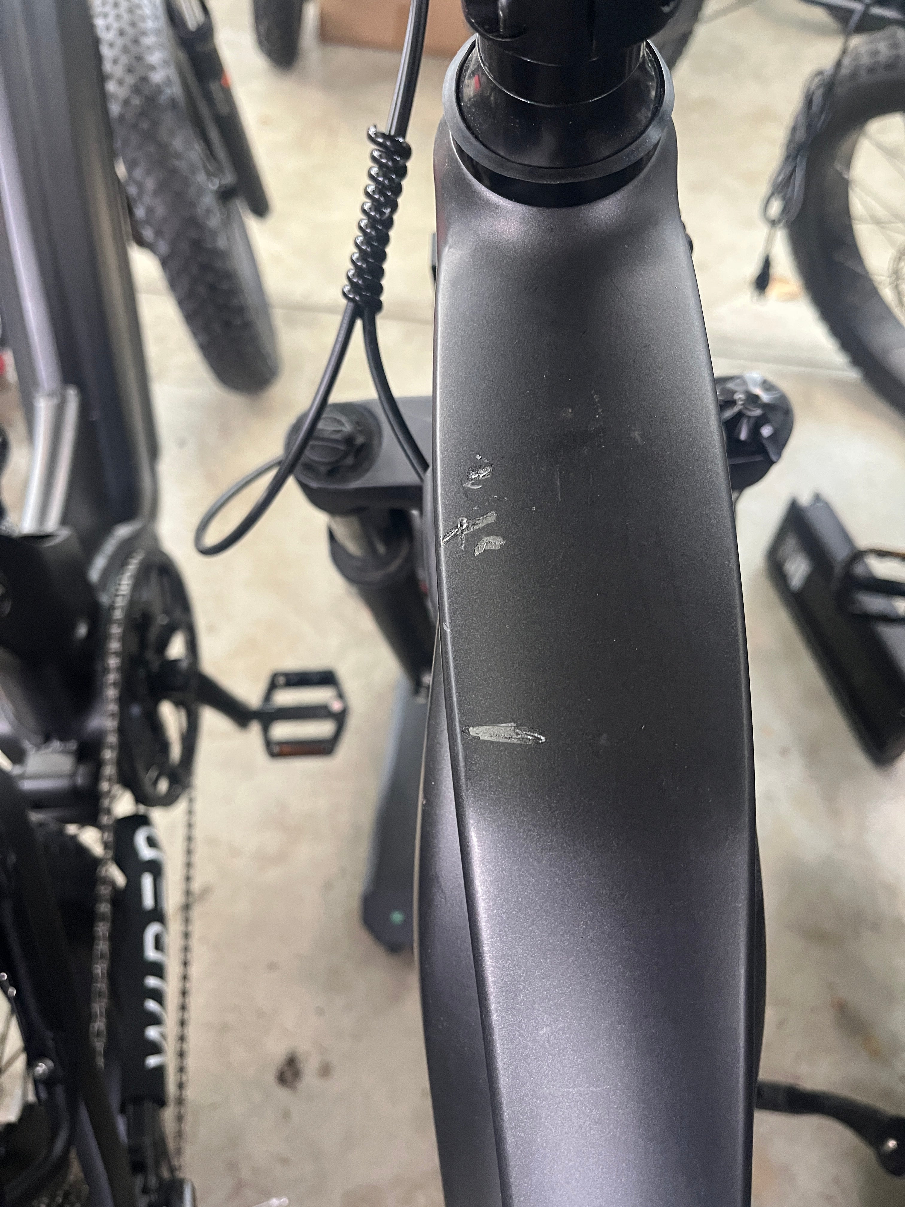 If a bike has obvious visible cosmetic damage— such as major scratches or serious paint blemishes — we try our best to capture them in the photos below the product. We do NOT photograph every single minor blemish! If there is no photo below the product then we did not see any or believe they were worth photographing! We suggest you inspect the bike first at our Mundelein, IL warehouse.