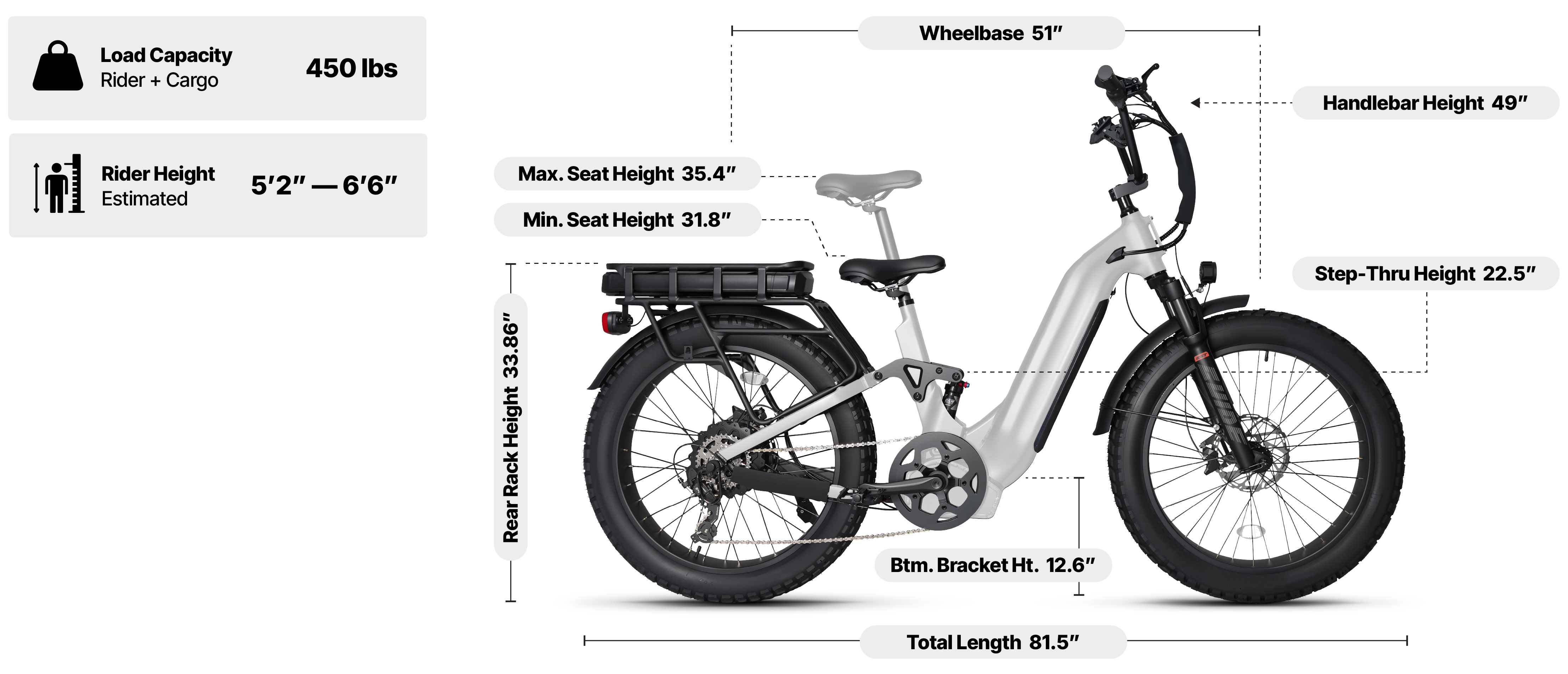 All-terrain power meets accessible versatility. Built with the same groundbreaking 72V performance as the Warrior, the Scout offers a step-thru frame that’s easy to mount and ideal for heavy-duty utility or adventures. Whether hauling gear, scouting trails, or exploring far beyond paved roads, this is the bike for riders who want high-powered performance without compromise.